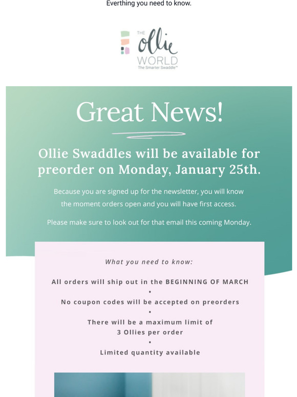 15% Off The Ollie World COUPON CODES → (4 ACTIVE) Sep 2022 The Best The Ollie World coupon code is 'CHECKOUTNOWSFJFQGQP'. The best The Ollie World coupon code available is CHECKOUTNOWSFJFQGQP. This code gives customers 10% off at The Ollie World. It has been used 468 times. The best The Ollie World coupon code has a success rate of 54%. The Ollie Swaddle the Smarter Swaddle.